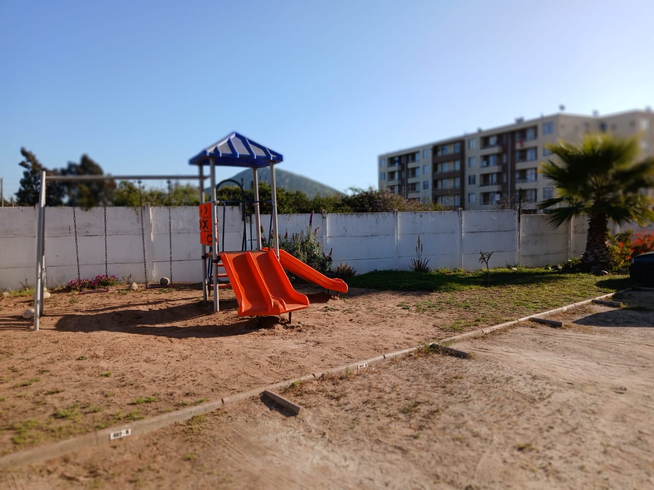 Áreas verdes, estacionamiento de bicicletas y sector de juego.